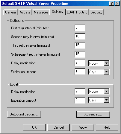 In the Properties window, switch to the Delivery tab. In the Delivery tab, change the default delivery intervals and timeouts to smaller values. Recommended values are shown in the image below.