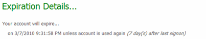 If an expiration policy is assigned to your user account, the details of when the user account will expire will be shown here. An information string states when the user account will be expired according to the current policy.