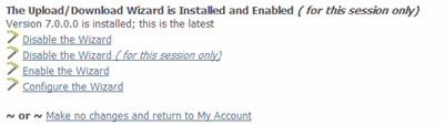 The ActiveX Upload/Download Wizard page, which is available only to Internet Explorer users, allows the user to enable or disable the ActiveX Wizard, and change settings.