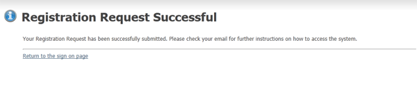 Once you enter the requested information and click the Register and Send Files button, you will either be signed in immediately or you will receive a page explaining that an email is being sent to your email address with information and instructions for completing the registration.