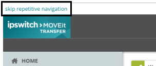o) Skip Repetitive Navigation Links: MOVEit Transfer contains an option to include a skip repetitive navigation link as the first item on each page of the user interface. Users can click the link to go directly to the dynamically generated content on the page.