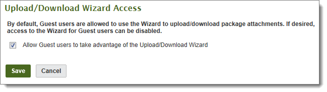 This section allows administrators to enable or disable access to the Upload/Download Wizard by Guest users (whether recipient or sender).