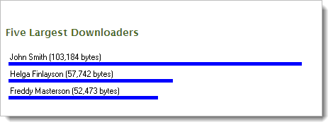 The Five Largest Downloaders display shows a bar graph of the 5 users in the organization who have downloaded the most bytes, according to the current set of audit logs. The relative download byte counts of the top 5 users are shown as blue bars. The actual download byte counts, along with each user's real name, are also shown.
