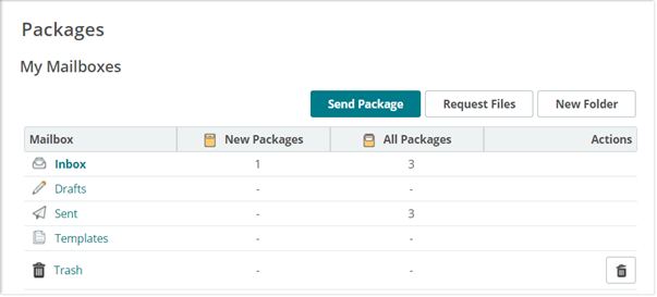 Packages are located inside of mailboxes. Click PACKAGES in the left navigation menu to open the Packages page.