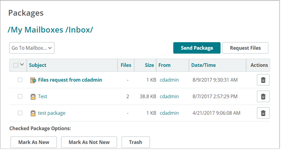 Select a mailbox to view the packages in that mailbox.