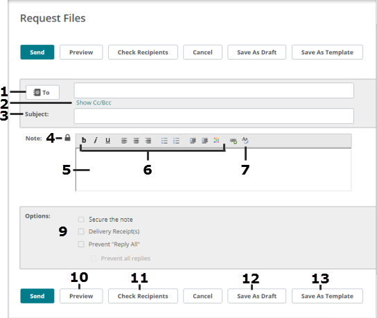 Show CC and BCC adds these fields to the page. Recipients cannot view BCC recipients. |