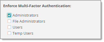 L'utilisation de l'étape de vérification supplémentaire inhérente à l'authentification à facteurs multiples doit être évaluée par rapport au niveau d'accès d'une catégorie d'utilisateur spécifique et à la valeur commerciale des ressources gérées par MOVEit Transfer.