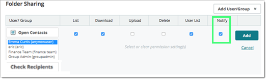 Les utilisateurs ordinaires disposant des autorisations Partager peuvent contrôler (activer ou désactiver) les paramètres de notification des utilisateurs auxquels ils fournissent un accès aux dossiers.
