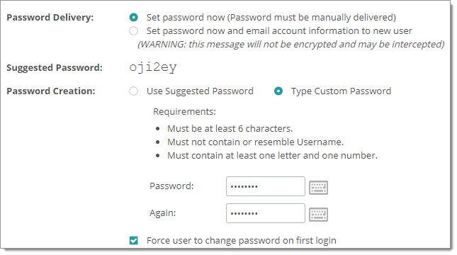 Important : Sauf si SMTPS (SMTP sécurisé) est configuré, les mots de passe sont envoyés par e-mail en texte brut. Pour plus d'informations sur la configuration de SMTPS, consultez la section SMTP de la rubrique Configuration système.