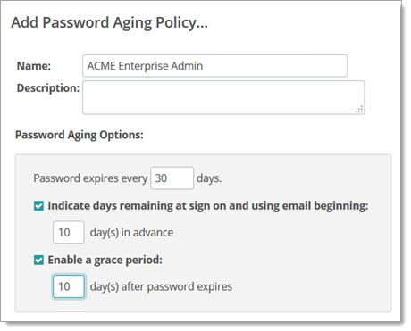 Définir des politiques de vieillissement des mots de passe pour chaque rôle d'utilisateur dans votre organisation