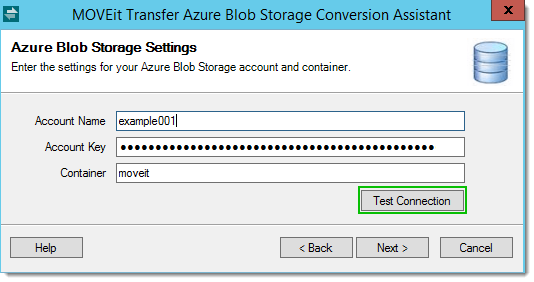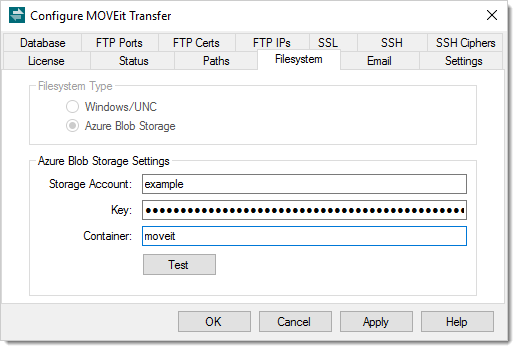 Une fois la migration terminée, vous pouvez vérifier que MOVEit Transfer pointe sur votre service de stockage Azure en consultant la console de configuration de MOVEit Transfer.