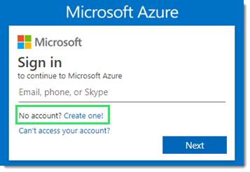 Vous aurez besoin des informations d'identification de connexion à votre compte Azure. Pour créer un compte Azure, accédez au Portail de gestion Azure, puis cliquez sur Créer. Écran de connexion au portail de gestion Azure