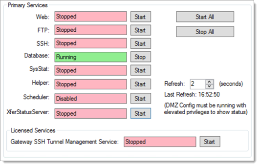 Cliquez sur l'onglet État et fermez les services pour empêcher les utilisateurs de modifier le magasin de fichiers MOVEit Transfer.