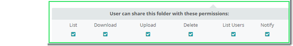 Choisissez les attributs de permission de partage que vous souhaitez appliquer aux utilisateurs réguliers dans votre organisation MOVEit Transfer.