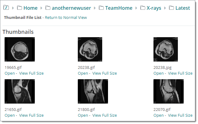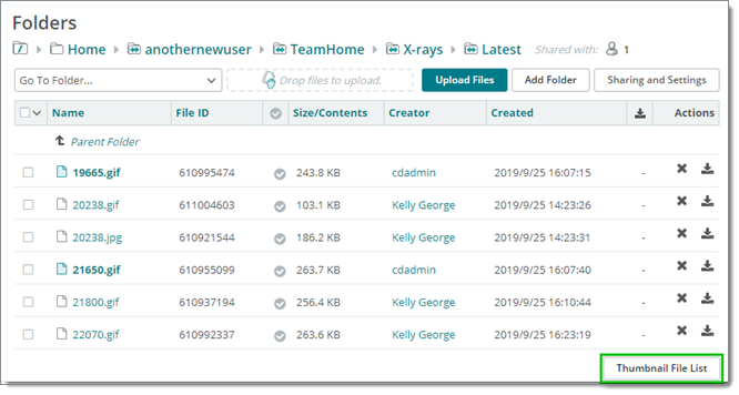 Après avoir cliqué sur Liste de fichiers vignettes, les fichiers sont affichés sous forme de vignettes :