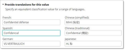 Vous pouvez également inclure des marquages de classification pour plusieurs langues différentes.