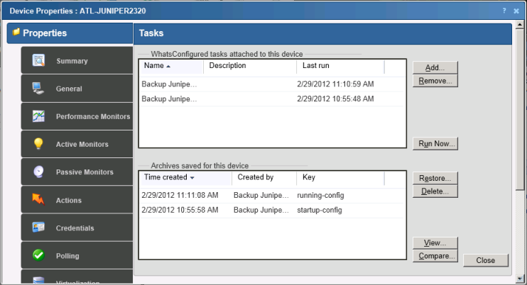 WhatsConfigured can be found on the Tasks section of the WhatsUp Gold Device Properties dialog.