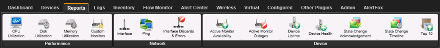 The Reports tab is where you go to view the historical data WhatsUp Gold gathers from your network devices. Reports are broken into three types: