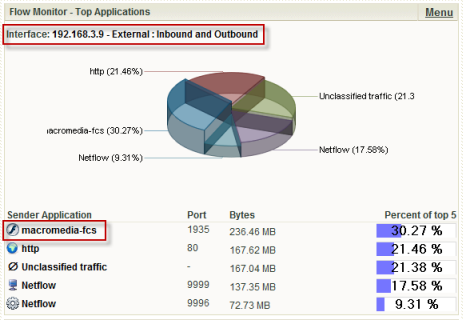 WhatsUp Gold 的「網路介面傳輸流量」儀表板報表,會連結到 Flow Monitor 的「網路介面總覽」報表。您可在 Flow Monitor 下的 WhatsUp Gold 儀表板報表選擇工具上,找到「網路介面傳輸流量」儀表板報表。