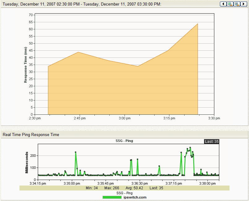 For all full reports where real-time data is available, a second graph is available below the graph showing historical data. This second graph displays poll data for the report in real-time, updating every second.
