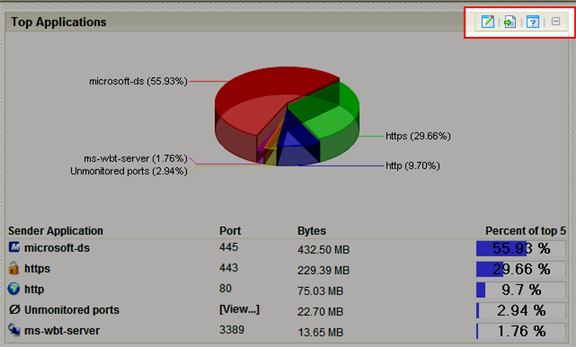 Each workspace report has a menu on the right side of its title bar. Using the workspace report menu, you can view help for the report, configure the report, export the report data, or expand and collapse the report.