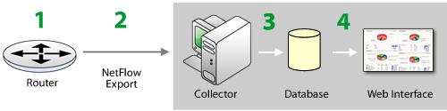 - The NetFlow Monitor collector stores the NetFlow export in the database.