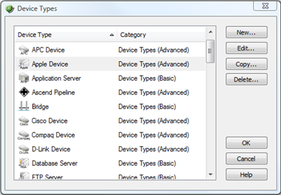 An important display option is device types and icons. These icons represent network devices on maps. WhatsUp Gold provides device types for more than 40 device types with an option to create additional custom types.